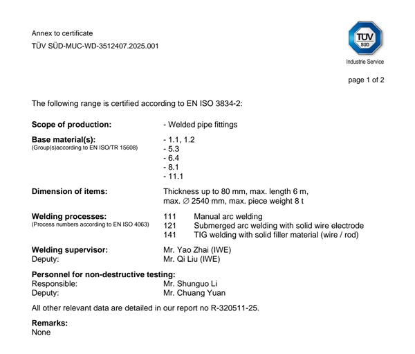 STANDARDS : APCO's Welding Fittings are manufactured in compliance with the following applicable standards:ANSIB16.9,ANSIB16.28 / ASTM A234,ASTM A403,ASTM A420,ASTM A860 / MSS-SP43,MSS-SP75 / WPHY42,WPHY52 ,WPHY60,WPHY65,WPHY70 / JIS B2311,JIS B2312,JIS B2313 / DIN2605,DIN2606,DIN2616,DIN2615