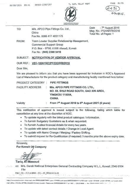 主办单位:营口亚太管件有限公司